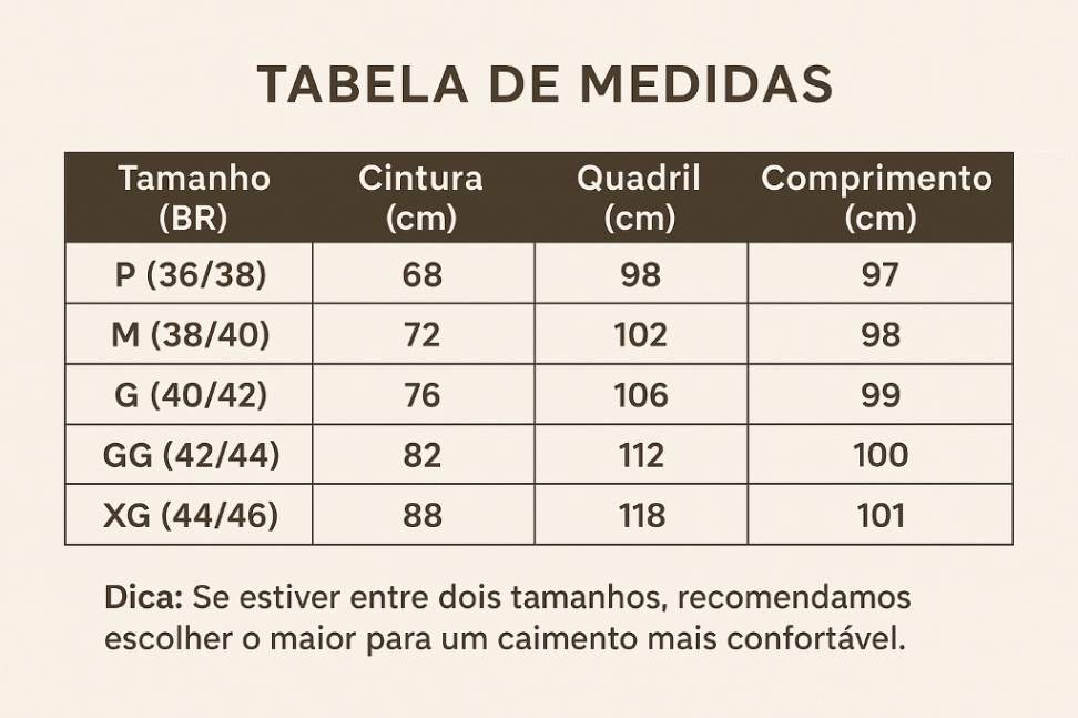 ✔ Cintura alta valorizadora: alonga a silhueta e garante caimento impecável.