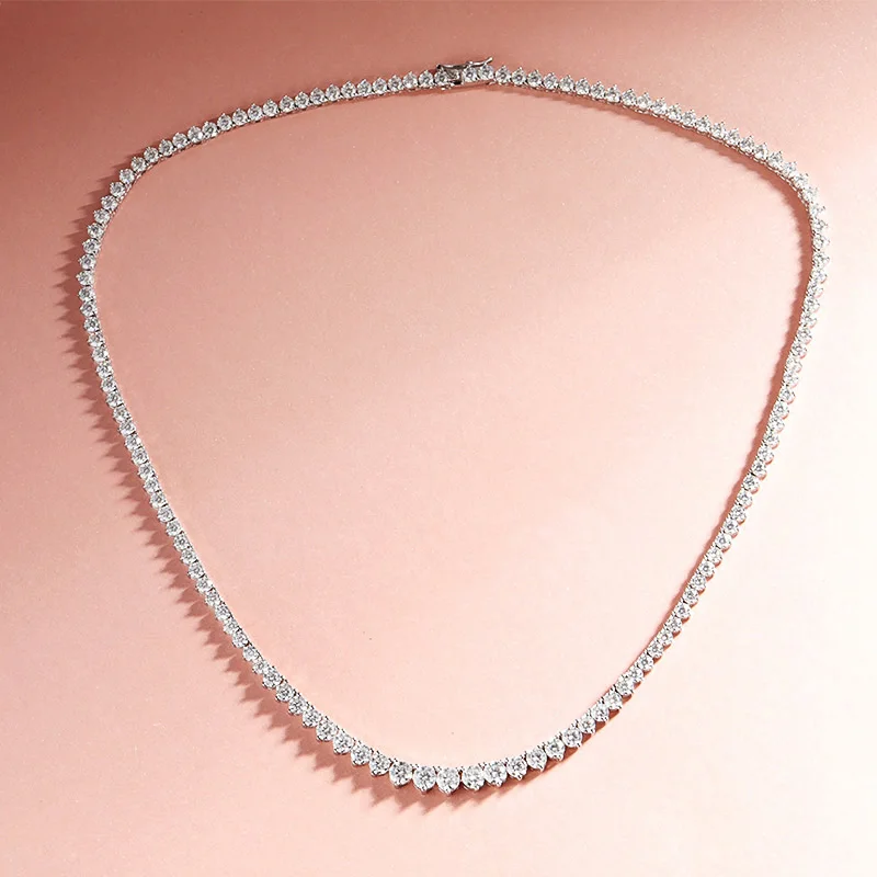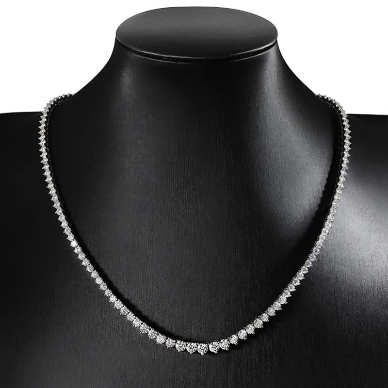 O Diamond Glow é confeccionado em Prata Esterlina 925 certificada, com banho em ouro branco 18K, garantindo brilho duradouro e refinamento. Sua corrente estilo “tennis”, com pedras graduadas de moissanite VVS1, produz um brilho excepcional — mais intenso que o de um diamante tradicional.