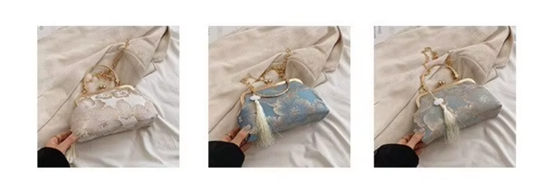 Deixe-se envolver pela elegância da cultura oriental com a Lotus Elegance, uma bolsa que combina bordado artesanal, design retrô e o luxo da seda em um acessório digno de destaque. Inspirada nos trajes tradicionais chineses, ela transmite beleza, equilíbrio e harmonia, elevando instantaneamente qualquer look — do casual refinado ao mais elegante vestido de festa.