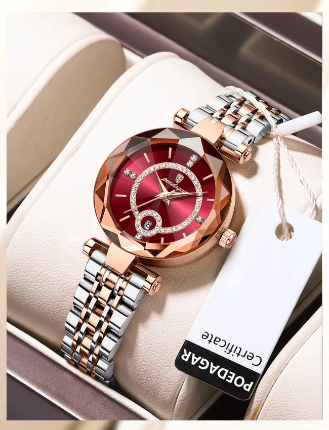 O Poedagar Diamond Luxe combina engenharia de precisão, design sofisticado e brilho marcante. Criado para mulheres que valorizam elegância, confiança e estilo, este relógio une o charme dos diamantes ao brilho do aço inoxidável premium, oferecendo um acessório de luxo para o dia a dia e ocasiões especiais.