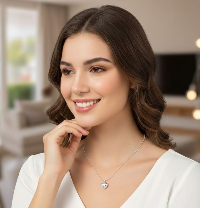 O Silver Heart Glow – Colar Feminino com Pingente de Coração é confeccionado em Prata Esterlina 925, garantindo brilho real, resistência e durabilidade. Seu design clássico e minimalista transforma este colar em uma peça coringa, ideal para mulheres que gostam de transmitir feminilidade sem abrir mão da sofisticação.
